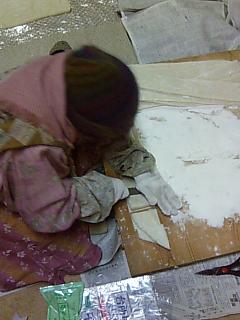 最近のポニョです。いつも決まった毛布(オッキーの)を、チュウチュウと、擬似おっぱい。両手でモミモミしながら、朝から、チュウチュウ中。大きくなったとは言え、まだ1歳にもなってないし、お母さんとは早くに別れちゃったし、かわいいんだけど、チョットかわいそうね。