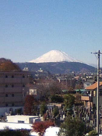 我が家のベランダから望む富士山。今日はいい天気でしたので、よく見えましたわ~。年末なのですから、お掃除でもすればいいのに~。オットから、市民会館でのコンサートのお誘いが息子は1日、練習試合にて、お出かけ。ならば、と地元のブラスバンドのコンサートに二人で行ってきました。無料というのに、お客さんの少ないこと宣伝不足ですね。1500人収容ホールが、ガラガラ。初めの4曲は、眠かったのですが、ドラムが入って、ポップス系になったら、ノリノリで、アンコール曲は、『ポニョ』と『そりすべり』で、気分が良くなり、元気に帰ってきました。無料のクリスマスコンサートや1500円の第九の広告もあって、「また来ようね」って話になりました。