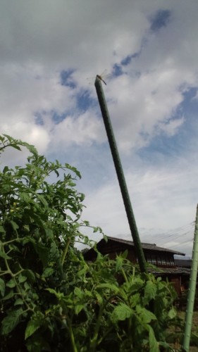 信州の天気は晴れ。暑いですよ。オカンの指令1.トマトの枝をとめて。20センチおき、くらいに麻紐で、しばりました。弟に出された指令は、白菜の消毒。すでに、モンシロチョウがいっぱい飛んでいます。あらら、こんなに、食べられてますよ。今日、これから、台風くるのになぁ・・・とつぶやきながらも、オカンの指令は、絶対なので、定着液を混ぜて、消毒を頑張る弟。10時過ぎには、終わらせ、一旦、駅へ。大阪に帰る特急しなのが、午後2時以降、運休、とニュースで言ってました。どうやら、早いところ、帰らないと、足止めになりそう。お昼ご飯前のオカンに、挨拶し、二人とも、帰宅の途につきました。