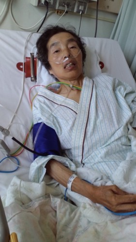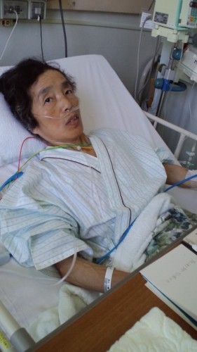 緊急手術から、4日たちました昨夜の夕方から、食事が出されたそうです。75歳、34キロのオカン。(今の体重は不明)薄い重湯、味噌汁、高カロリーのジュースから、開始。大変、まずかったそうで。担当のナースに聞いてみたら、残しても良いらしいことが分かり、今朝の食事は半分。昼の食事は、3分の2くらい、飲んだそう。私が、今日、昼の12時過ぎに面会に行くと、食事は終わってました。そして、すごくまずいので、細かく刻んだ梅干しとしそ。シジミの味噌汁の素、を持ってきて、とリクエストがありました。それがあれば、出された重湯を、飲めると思う、と。食事をすると、腸が、超気持ち悪い、って言ってました。とりあえず、髪の毛をとかして、歯磨きは坐位になり、自分でして、うがいした水を私が捨てに行ってましたら、『梅ちゃん先生』が始まって、楽しそうに観てました。すっごい笑顔で。前にかけたタオル、はずすのも忘れて・・・この後、実家に戻り、差し入れの準備をし、一旦、畑に行き、ピーマンや茄子を収穫し、いそいで、病院に戻りましたら、もう、大部屋(3~4人)に引っ越してました。ベッドサイドに、1度、立って、車イスにて、移動したそうです。今度は窓際じゃなくて、暗め。医師からは、どんどん歩いて!と言われたそうですが、「とんでもねぇ、何言ってるだい」と、オカン消極的。でも、今日、ベッド柵につかまり、坐位になれたことベッドサイドに立てたこと大部屋に移動になったこと少しずつ、確実に、快復してます。まだ微熱がありますが、尿のカテーテルも、いつでもとりましょう、って、スタッフは言ってましたね。また、明後日行く予定。ぐ~~んと、可動域が増えてると、いいな。
