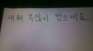 『明けましておめでとう』を意味する言葉です。沢山の福を受け取ってくださいって意味らしいですが。。。 昨日、従姉からメールがあり韓国語でどう書くの??って聞かれて、ポストイットにメモして写メールしました。。。 今年の旧正月シーズンは2月13日からです。 今年は2月13日が大晦日で2月14日が元旦だそうです。なので、その時期に韓国や中国、台湾に向かわれる方お店等が閉まってる場合があるので、お気をつけて~!!中国語では。。。恭喜發財!