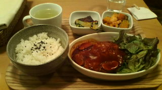 今年、お初のtoday's lunchです。昨日も、お昼食べたんだけど、写真撮り忘れて。。。ちなみに、きのうは『銀三』の讃岐うどんでした。。。 今日は、前から気になっていたcafeに行ってきました。銀座で隠れ家的なcafe。。。店先には、看板犬(名前はまだしらん)がいるのですが寝てましたので写真もとらずいそいそと帰ってきちゃいました。次回紹介できるよう頑張りますp(^^)q で、今日のランチプレート(¥900) ・634ハンバーグ ・ほうれん草とじゃがいものオムレツ ・かぼちゃとえびのマヨネーズ和えメイン1品+サイド2品を選べるシステムブレンドコーヒー(¥400)食事をした人はドリンクが¥200引きに。。。私は合計で¥1100でした。。。 綺麗で落ち着いた感じのcafe!ご飯を食べながらゆっくりできそうな雰囲気!野菜も生産地等が明確になっていて。。。お味もなかなか。。。ボリュームはごはんが少なかったけど女子にはもってこい!!今度は別のメニューにチャレンジしたいのとデザートも食べてみたい! 【お店情報】cafe634 東京都中央区銀座3-12-7 マップ11:00~18:00 土日祝休