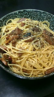 最近、塩豚を作ることにはまってます。豚の塊(肩ロース等)に塩を揉み込んで数日間冷蔵庫の中で熟成させて作るやつなんですが。。。ベーコン代わりになるので、スープでも炒め物でも何に使っても美味しいです。 で、今回はカルボナーラを作りました。これは、生クリームを一切使わずに卵の黄身とパルメジャーノレジャーノ+パルメザンチーズ(粉チーズ)で作った簡単なものです。baron(旦那さん)はクリーム系の食事は苦手なのですが生クリームが入ってないから食べれると訳の分かんないこと言ってます。。。 私は、生クリームが入った方がまろやかになるように思うのですが。。。しかし、卵の黄身だけ使うので、栄養満点だと思うのですが、栄養満点ということは、カロリーは相当なものでしょう!!