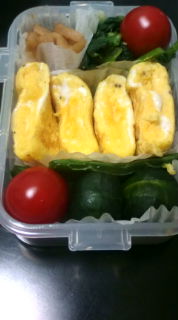 【弁当中身】・はりはり漬け・小松菜のナムル・パルメジャーノのタマゴ焼・ミニキャベツとスナックエンドウのコンソメ煮・プチトマト それに、鮭のおにぎり と気合いをいれてつくってみましたが気合いを入れ過ぎて本日は弁当お休みです。 あんなに、節約しようと思ってたのに。。。 生活習慣から治さないとだめかも~