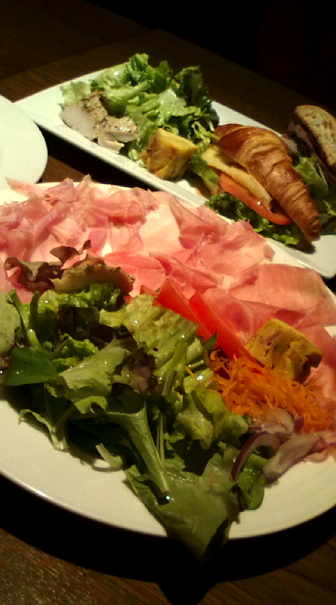 午前中に溜池山王にあるマッサージに行き90分たっぷりマッサージをしていただきその後、ランチに行きました。 とっても美味しい生ハムとサラダをいただき写真には無いのですが、バターたっぷりのクロワッサンを平べったくしたパンが付きました。奥に見えるのは友達のトラメ&クロワッサンハーフです。それに、ドリンク&デザートを頼み。。。私はグレープフルーツジュース。。。彼女は仕事が夜からなので、ワインを飲んでました。。。しかし、ボリュームが少ない為、夜までもちそうにありません。。。 【お店情報】Bar Del Popolo 東京都港区赤坂2-14-14 Hot Pepper
