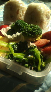 みなさん、いつもtontonの拙いブログに遊びに来てくださりありがとうございます。。。アクセス数:8000を無事に突破することができました。これもみなさんのお陰と感謝しつつ、今後ともtontonのつぶやきにお付き合いください。 本日、弁当作ってみました。。。【本日の弁当内容】 ・おにぎり 梅+おかか+ごま+お醤油 2つ ・ソーセージ炒め ・小松菜のナムル ・ブロッコリーの温野菜 ・タマゴ焼き ・プチトマト 何か、いつもと変わらないような気がする~どうしたら変化をつけれるかな~色彩は、赤、緑、黄色。。。まぁまぁ綺麗だけど。。。毎日お弁当を作ってる人のブログで研究させてもらわなくちゃ!!