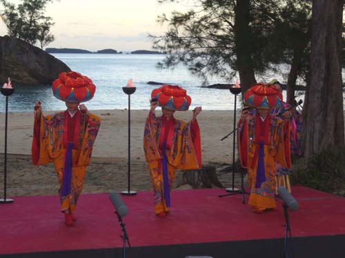 夕方ホテルのビーチで琉球舞踊とQVCのライヴを観覧しました。