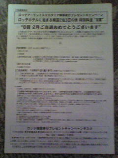 ハガキ分のロッテの韓国旅行B賞〔2月〕当選通知が届きました。