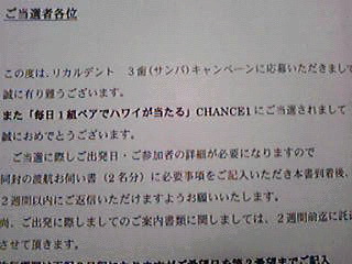 リカルデントで当確していたハワイ旅行の申し込み書が届きました