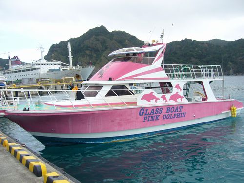 ボニンブルーと呼ばれる紺青の海をクルーズ船に乗り野生のイルカを探します。