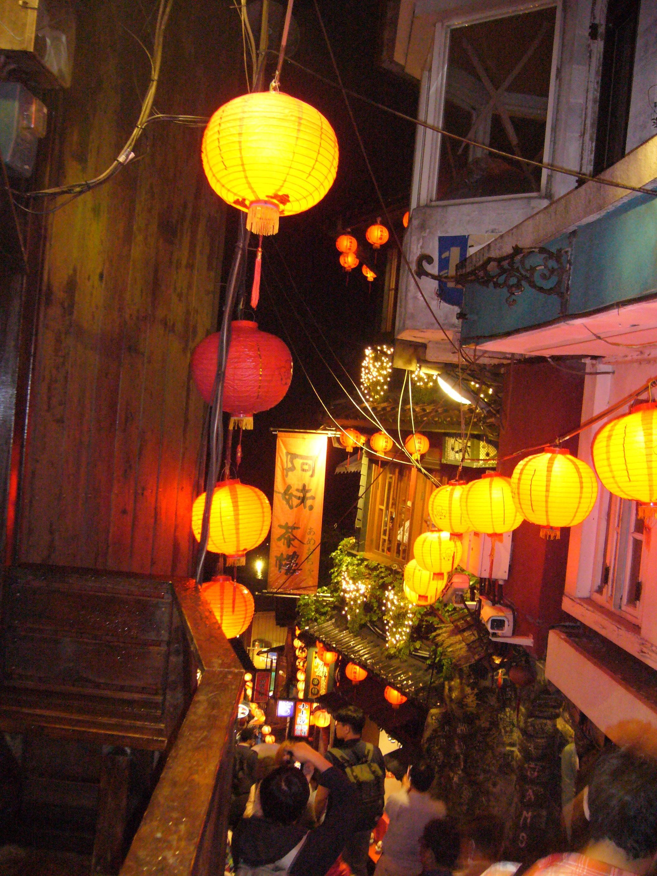 夕食の後は提灯の明かりが幻想的な夜の九分を散策しました。