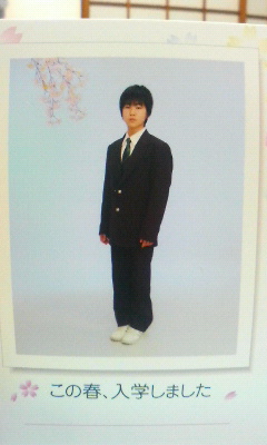 昨日は卒業式・・・この地域では、卒業式に中学校の制服姿で出席します。長男としの制服姿・・・らぶ結構イケテルんじゃない??気をよくした私は、式から写真スタジオへ直行!!記念写真を撮影しました♪・・・で!!!さきほどクラスのお友達からのメッセージを読んでましたら・・・としの友達からのメッセージに気になるものが・・・「○○(彼女)とがんばれ」というのが何個か・・・ん?ん?いよいよきたか???「ね~とし、○○ってだれ??」とし「え??し~らない。」ってとぼける・・・彼女だね・・・きっと・・・イニシャルや苗字が書いてあったので、後で名簿をみたら・・・やっぱり女の子あ~・・・ついにこのときがきたか・・・恋愛って、いいな・・・そう思うから、としにもどんどん恋愛してほしい。いま、草食系男子なんてはやってるけど、そんなのじゃなく・・・ほんとの男になってほしいから。傷ついた分だけ、素敵になれる。次はもっといい男になれる・・・。そうおもうから・・・。がんばれよ~!!