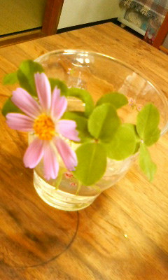 またまた復活したマイブームのよつばさがし・・・。道端にしゃがみこんでいたら、おばあちゃんに「何がとれるの~~??」って聞かれました。「よつばです♪ほらこんなに~~」「まあ」「よかったらいかがですか~」「ありがとう孫がよろこぶわ~~」昨日、ひろにお見舞い&私に激励のプレゼントもらったの。アンパンマンのボールの裏には、5年生のお姉ちゃんが、ママと一生懸命書いてくれたメッセージがあるんだよぬいぐるみもかわいいガンバル!!こ~んな、めずらしいお花もお花のあとに、ハート型の実がなるんだってこんな感じで・・・素敵~~最近テンション低かったのは、どうしてもどうしても、まわりのみんなと自分をくらべちゃって、つらかったみたい。最近、自分の体や心と向き合うようになったから、気づかないようにしてたきもちも、気づいてつらくなっちゃう、そんな過程なのかも・・・社会的地位や・名誉や・お金や・・・そういうのって、全部三流かも・・・人に誇れることって、ないかも。いたって普通。でも、私は私・・・生きてていい。大事にしていい。主張できるところは主張していい。あきらめないで、昨日の自分よりも今日のほうが、理想に近づけばいい。ナイスな心意気ルックスでばっか勝負するヤツに たぶん なりたくないんだ曲がり角で 道草してたらツキは逃げてった今がすべてじゃないからあんまりムキになんなよウソもつくしインチキしても誰かを助けてる たまに~♪だよね~