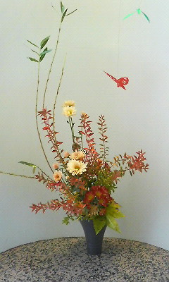 今日は、「病棟の外に出てOK 」っていう許可を頂き、久々にひろを1階に・・・1階は外来なんですが、休日はしずまりかえっています。紅葉の庭を眺めながら、二人静かにお散歩です。いつも、お散歩で楽しみにしてるのは、季節のいけばなです。今日はこれ拡大すると・・・秋らしいでしょ。いつかお花のボランティアの仲間入りしたい。中庭を眺めながら、ぼんやりしてたら・・・以前お世話になってた総合診療科(現在は血液腫瘍科かな?)の部長(テレビでおなじみのあの方・・・)がやってきて、声をかけてくださった。「ごめんね。なかなか病棟にいけなくて・・・お熱は下がったかな??う~ん・・・髪の色・・・栄養が足りてないみたいだねえ。」大勢いる患者の、一親子に声をかけてくださり、ありがたい。果たして私が逆の立場だったらできるかなあ・・・?尊敬。今日のひろは、吐き気もひどくないし、お尻もあんまり痛がらない。久々の院内お散歩が無事おわり、はっぴーひろは順調でうれしいってわれに返ったら・・・研修のケースレポートのテーマも考えてないことに気がついた・・・文献だって読まなきゃならない・・・ああ・・・気が重いなあ・・・話はかわり・・・実家に来ていた、中国からの農業研修生が、明日帰国することになりました。お別れにボーリングをしようってさそわれたけど、ちょっと余裕がなくて・・・としも気がのらないみたいだったので、残念ながら欠席。でも、年単位の契約で、同じ人は二度と派遣されないって聞いて・・・お別れに行かなきゃって・・・会ってきました。ご主人やお子さんを残して、しらない土地にきて大変だったね・・・ありがとう。あんまり顔をあわせたことがなかったけれど、これでお別れっておもったら、お互いにウルウル父は農業がダイスキで、でも母が難病で・・・いろんな葛藤の末に決めた、研修生の受け入れ・・・でも・・・やっぱりそれはそれでいろいろと大変で・・・母のことも考えて、結局来年は家族だけでやっていくことに決めたって・・・少し早く研修生に帰国してもらうことに決めたって。私もぜんぜん力になってあげることができなかった。反省してる。でも、父を近くでみていて、今まで理解できなかった部分をわかることができたきがする。男の人って、いつまでも夢を追い続けていたいもの・・・。でも、守るものがあるからこそ、夢をあきらめたり、折り合いをつける必要がある・・・。社会的に地位がなくても、どこにでもいる農家のじいちゃんでも・・・家族のため、お母ちゃんのためだけに生きてきた・・・私の父ちゃん、えらいぞ!!ありがとう!!ご苦労様・・・!!面と向かっていえないけど・・・今はそう思ってる。家族を守っていくこと・・・長年続いた家を続けていくこと・・・その大変さがわかっただけでも、離婚して戻ってきた意味があったのかもね。ああ・・・日記を書いて現実逃避・・・私の休日が終わる・・・ケースレポート・・・締め切り・・・迫る!!!(泣)