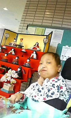今日は病院に面会に行く前に私の愛しい愛車、アイシスちゃんの修理のためにディーラーさんに。そのあと、市内の実家に車を借りることにしてたので、自転車で行くことに・・・。車では15分もあれば楽勝なのに・・・1時間もかかってしまった・・・心地よい疲れ・・・などというもんじゃない!もうクタクタ・・・自分の家に帰って一休みのつもりが・・・1時間も爆睡ほかに用事もあったので、済ませてから病院にいきました。病院では、少しずつ安定してきて、退屈モードなひろ。ニコニコ笑顔で待っててくれました。「ひろちゃん、退屈みたいよ。」師長さんや看護師さんがおしえてくれたので・・・病院内おさんぽにでかけました。ひろは、私に似て、お出かけダイスキだから。途中で主治医の先生に会ったり、知ってる看護師さんに会ったり・・・結構顔が広いうちの子・・・玄関ホールにおひなさまがいるので、写真撮影。ひろは私の影響で、女の子チックなものによわいのだ・・・病院のしろくま図書館のロボットがいろいろ話しかけてくるので、じっと見つめるひろ・・・今日は外来の中庭周りを3周もまわった。主治医の先生にも車椅子押してもらったり、検査データの説明をしてもらえてラッキーでした。部屋に帰り、ひろと一緒のベッドでまた爆睡だった私ですひろのそばにいるとぽわ~~~んと眠くなる。きっと癒しのオーラが出ているに違いないのです。