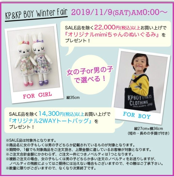 キッズ ピピさんも 本日0時からウィンターフェアー始まります(*^^*) 可愛いノベルティー。 6600円以上で卓上カレンダー♪ KP ニットプランナー 19aw-09 税込6,600円以上お買い上げで KPオリジナル2020卓上カレンダープレゼント 22000円以上でmimiちゃんのぬいぐるみ♡ KP ニットプランナー 19aw-09 税込22,000円以上お買い上げで KPオリジナルmimiちゃんぬいぐるみプレゼント mimiちゃんのぬいぐるみやっぱり可愛い\(^o^)/ mimiちゃんの刺繍襟が可愛いトレーナー♪ KP ニットプランナー 19aw-09 mimi刺繍レースカラートレーナー 100cm 110cm 120cm 130cm 定番のパーカー♪ KP ニットプランナー 19aw-09 チェックmimiお花刺繍ジップパーカー 100cm 110cm 120cm 130cm cocoちゃん可愛い♡サイズが80、90しかないのが残念💦娘ギリギリかな…😢 KP ニットプランナー 19aw-09 裾レースcocoチュニック 80cm 90cm 去年のmimiちゃんバージョンからの今年はcocoちゃん♪このトレーナー好きです(*^^*) KP ニットプランナー 19aw-09 ボアCOCOトレーナー 日本製 80cm 90cm リバーシブルスカート! KP ニットプランナー 19aw-09 パリmimiリバーシブルシフォンスカート 100cm 110cm 120cm 130cm タイツと靴下のセット♪ KP DECO ケーピーデコ 19aw-09 ブーケ柄タイツスパッツ&ソックスセット 日本製 105cm 120cm 135cm mimiちゃんトレーナー♪ KP ニットプランナー 19aw-09 ラブレターmimiトレーナー 日本製 100cm 110cm 120cm 130cm 他にも↓↓ ユニクロ、GU、ベルメゾンなどは↓楽天リーベイツ