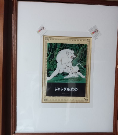 ジャングル大帝のセル画。バックライトで照らして飾りたいと思って購入したが、適切なものが見つからずに今のところ適当に飾られている。この絵柄は版画にもなっている。欲しいが、高い…