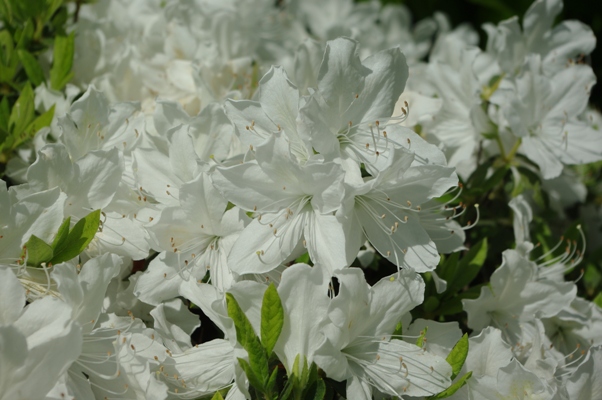 赤とピンクと、この白い花のツツジが咲いています。ミツバチさんの邪魔をしない様にそっと写真を撮ってみました。