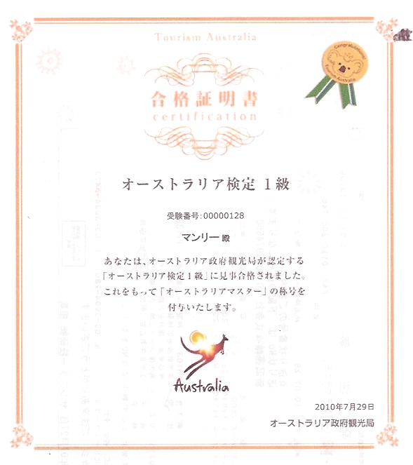 オーストラリア検定を受けて見ました。オーストラリア検定と言ってもだれでも簡単に取れます。丁度一週間後には、大変お世話になっているオージーが来日します。我が家にも3泊程して頂き、楽しんで頂ければと考えています。