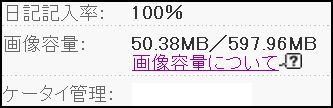 いつも楽天ブログをご利用いただきありがとうございます。本日楽天ブログに登録出来る画像容量の変更を行いました。今までは全ユーザ様一律最大50MBとなっておりましたが、今後はブログの総アクセス数が10,000アクセスまでは今まで通り50MB、以降は1アクセス増える毎に5KB増加し、最大容量は10GBまで増加致します。【例】2,000アクセス → 50MB20,000アクセス → 100MB200,000アクセス → 1GB(1,000MB)2,000,000アクセス → 10GB(10,000MB)で、オイラのはとなってた。おっ、10倍あるじゃん。へ~。てことは楽天写真館のほうは使わなくて済むってことかな。