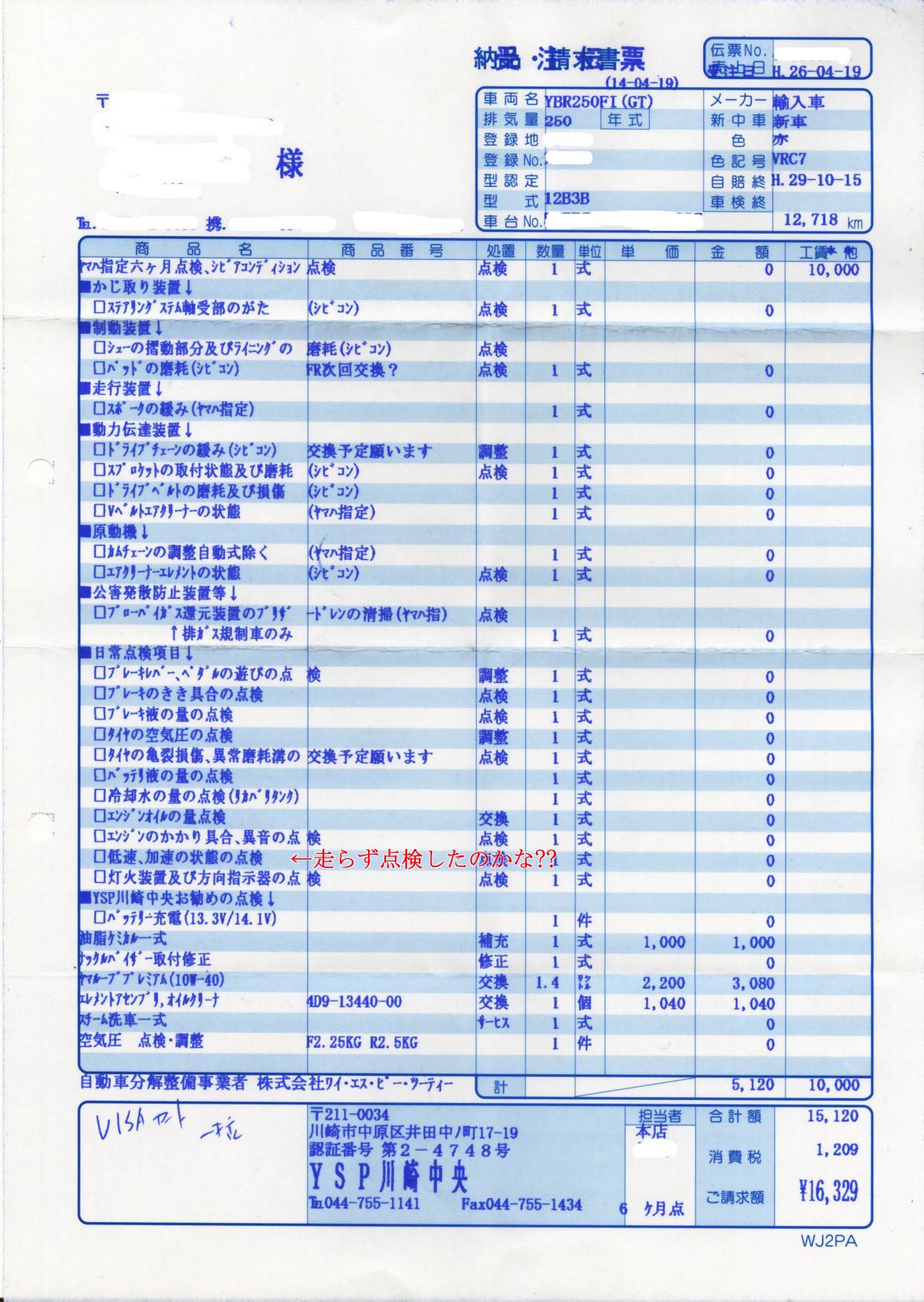 すでにメールで連絡してある。雨の予報だったので行くのをやめた。やめて正解、朝から雨だった。オイル&エレメント交換は今回はしなくていいと思ってたけどツーリングで距離が延びたのでやってもらうことにした。メールしておいたけど通じているかしら?YSP川崎中央さんはメールのレスポンスが遅いのでちょっと心配バイク屋さんなんでいつ行ってもエレメントぐらい置いてあるべぇってか。