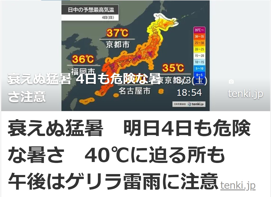 一番の暑さかな西日が当たってとうとう37.5度は今年最高だというか我が家では初めての温度だ本当に体に毒だな