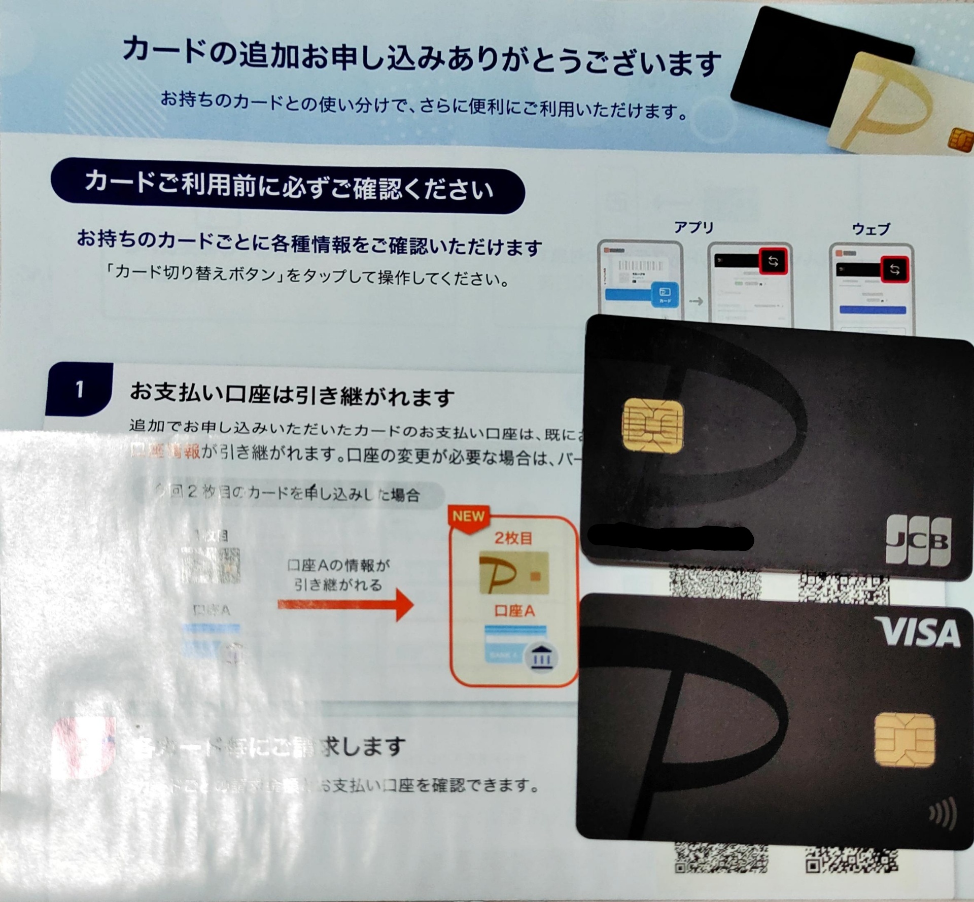 耳鼻科の病院だけPayPayカードがJCBだったために使えなかったそこだけ仕方なく三木谷のカードだったPayPayカードが2枚持てるようになったということでさっそくVISAのカードを申し込んでおいたところ届いたこれで三木谷とは完全におさらばできたんじゃないのかな