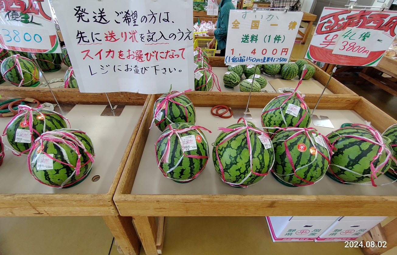 伊豆では平井のスイカは人気だということで三島に買い物ついでにJAふじ伊豆 フレッシュ函南店で買っていく甘いといいな