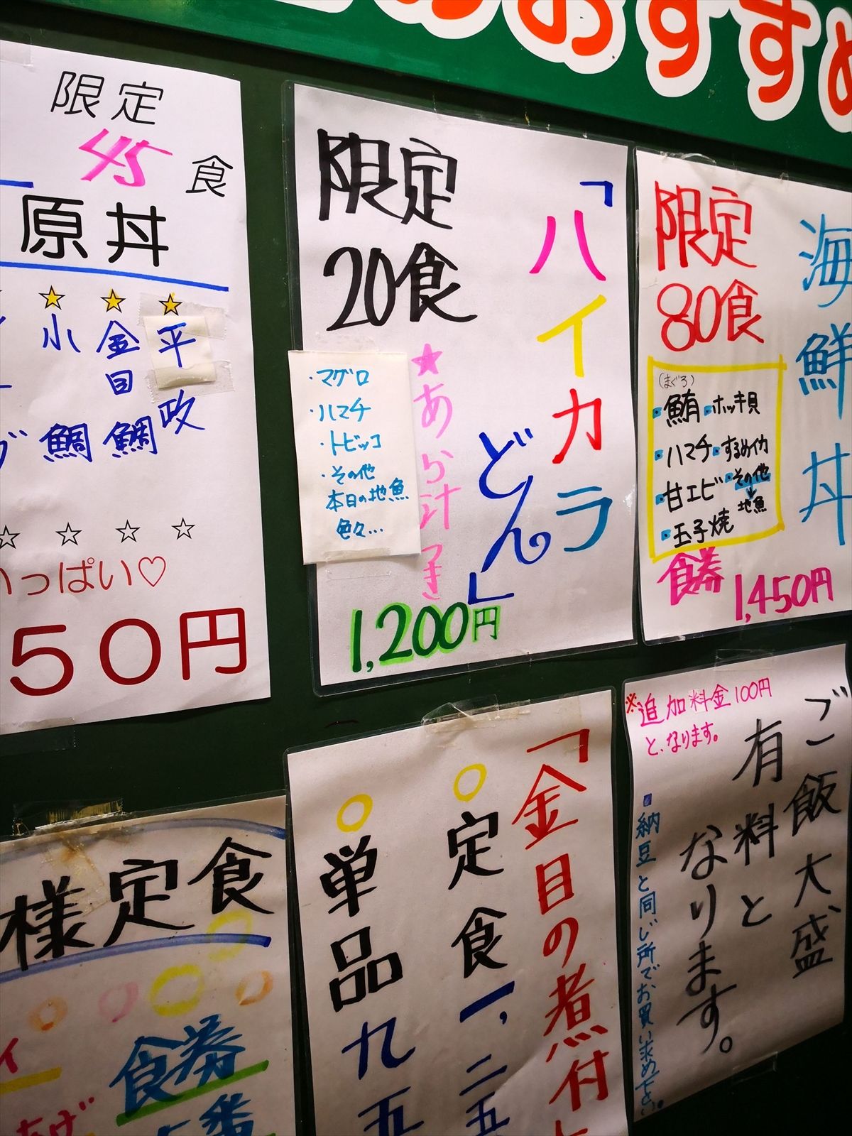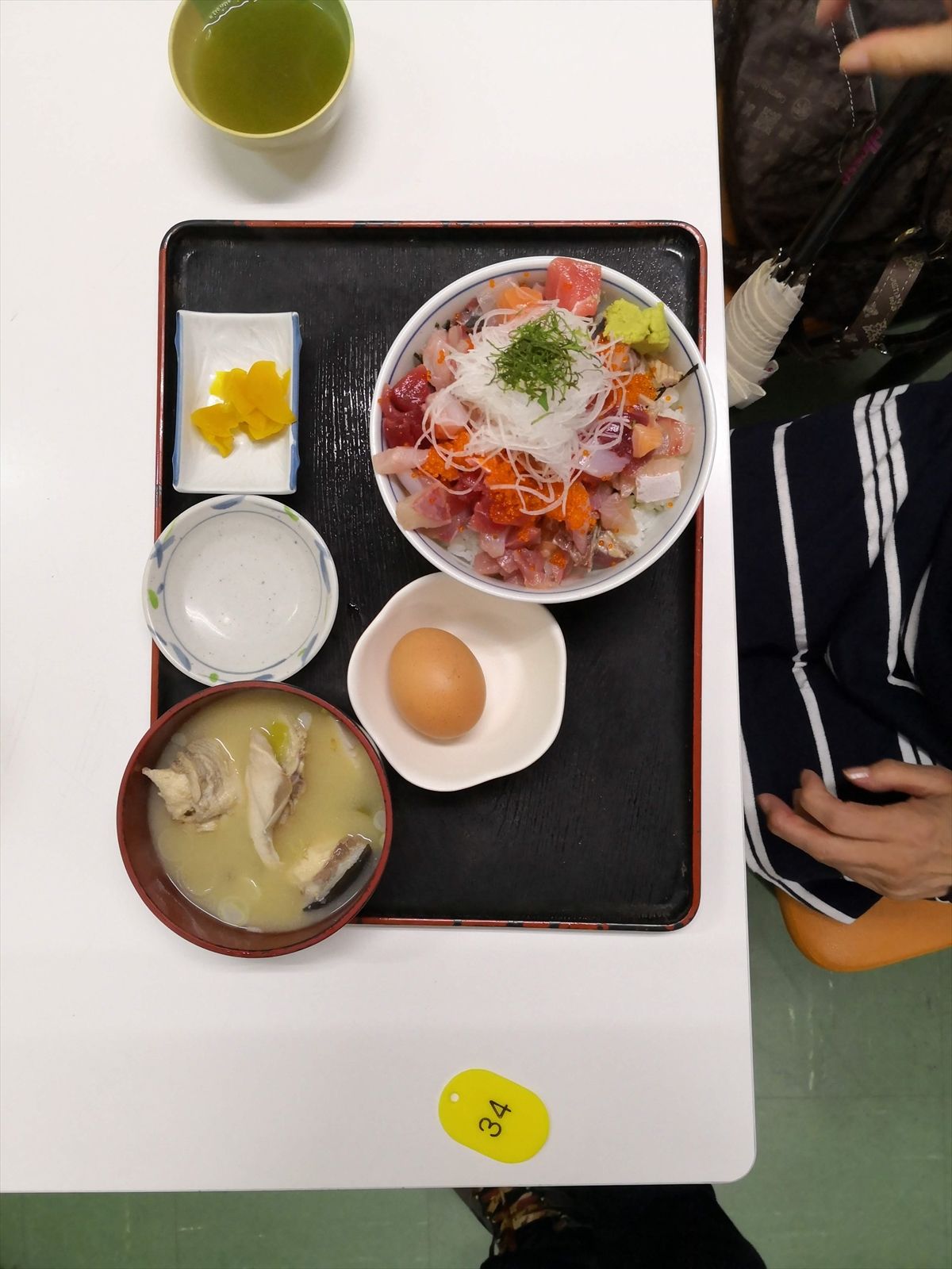 オイラは鮪すき身丼1200円、奥さんはハイカラ丼1200円にした。