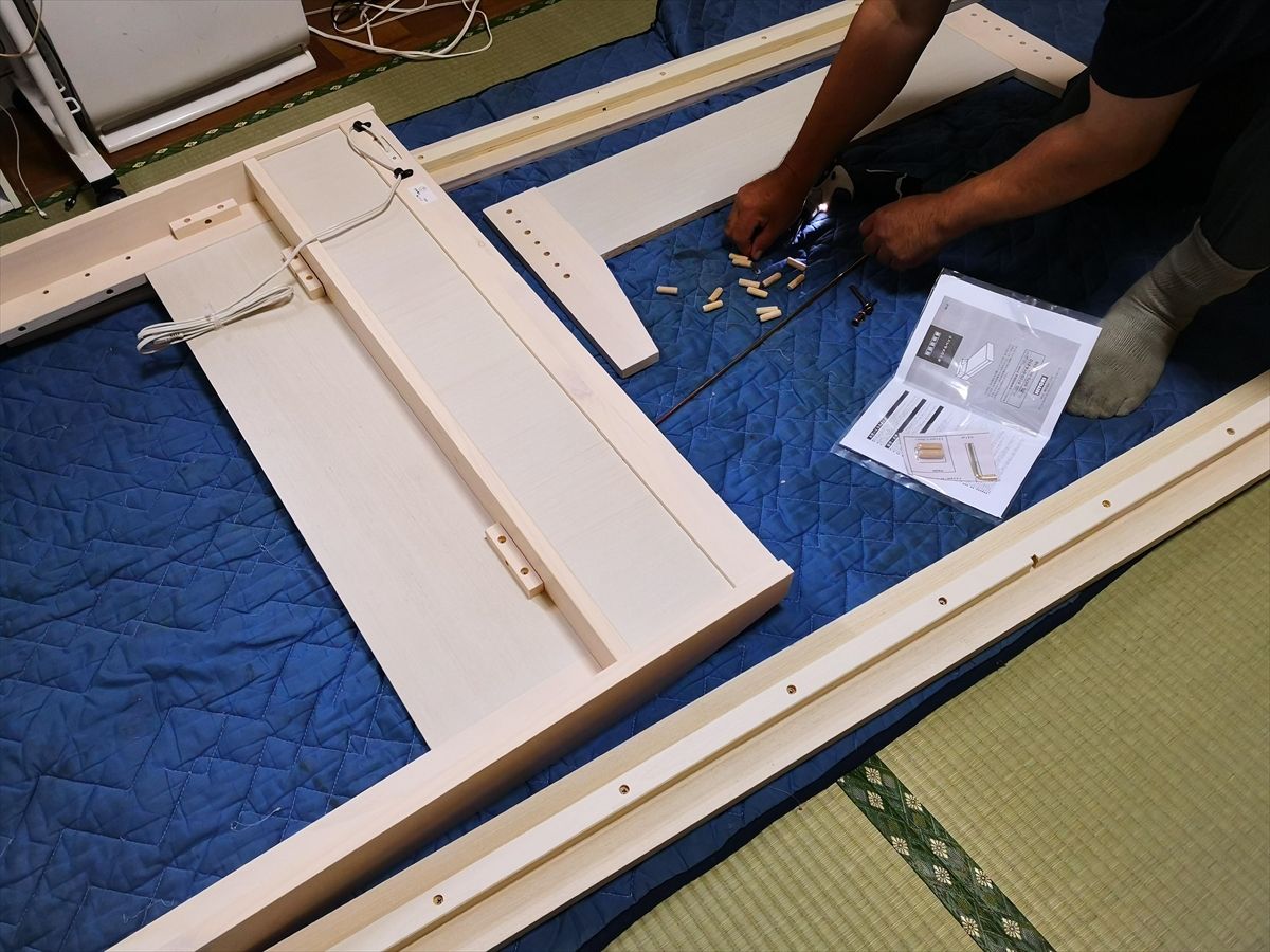 奥さんのベッドにもマットレスを取り付けてもらう。