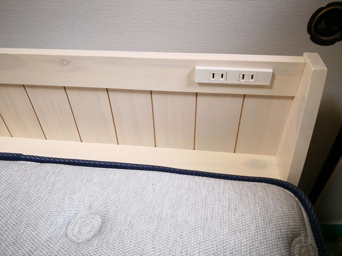 一番下だとベッドの下に物が入らないし、コンセントがある棚からベッドに物が落ちてくるかもしれないし。