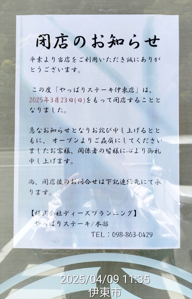 なんと先月閉店してた
