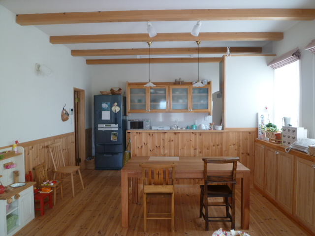 少し前に2階の子供部屋を記事にしましたが、今回はそのほかの部屋。子供部屋の向かいは洋室。まだ使っていないので何もありません。ここは夫の部屋(書斎)にするつもりで作りました。照明も壁紙もカーテンも夫が選びました。なぜか他の部屋より高い位置にあるので、2段の階段を上って入ります。洋室の隣は納戸。4.5畳の広さなので使ってない家具などを置いてます。お見せできるような場所ではないので、画像はなし・・・。階段を上がってすぐのホールは洗濯干しスペース。ホールからみた階段降り口。そしてトイレ。1階同様、廊下やホール、階段が広くとってあるので個々の部屋は狭くても、全体的に広く感じます。ただ、夏場のこの時期、2階は恐ろしく暑いです。日当たりが良すぎて・・。冬は夜までポカポカでいいんですけどね~。++++++++++++++++++++++++++++++夫は明日からお盆休みに入ります。長女は明日まで保育園。そして週末からは母が泊まりに来ます。父が1週間出張でいないので、寂しいからって(笑)やった~!家事さぼれる~(* ´З`*)にほんブログ村カントリー家具/カントリーデスク/手作り家具/パイン家具/ダイニングテーブル/シャビー/アンティークシャビーダイニングテーブルOrワークデスクW1500カントリー家具/カントリーデスク/手作り家具/パイン家具/ワークデスク/アンティークアンティーク風ワーク・デスク【RT-105-160】【パイン家具】【アンティーク仕上げ】【学習机】【子供家具】【パイン材】【無垢材】[MOBILE GRANDE モビリグランデ]ラスティックパイン ワークデスク 1600~上質なパイン材を丁寧にアンティーク加工したパイン家具Rustic Pineシリーズの色々な使い方ができる机です。作業机や学習机にも。幅160cmタイプ。【メーカー直送】【ラッピング不可】