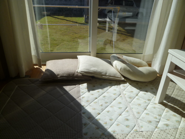 先週くらいから、何にもしたくない~って日が多々あり、自分でも、困っています・・・。家事は必要最低限のことはしますが、それ以外、何もやる気が起きない´ー`年末に向けて、したいことは沢山あるはずなのに。ダラダラして一日が終わります。もう11月も後半だし、今年もあと1ヵ月ちょっとしかないっていうのに。毎年言ってるけど、1年って早い。そんな事を考えながら、今日も1日あっという間に終わってしまいそうです。今日は天気良いな~、お布団干したら気持ちいいだろうな。保育園からは和太鼓の音が聞こえます。長女は今頃、和太鼓の練習中なのでしょう。。。私も何かしなくちゃ、と思い、一応、日が当たってる場所にクッションを並べてみました(笑)まだ冬用のラグさえ出していません。今までのラグの下に、ホットカーペットを敷いただけです(苦笑)にほんブログ村