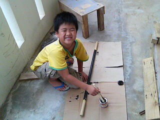 昨日 太い棒と 黒と黄色のペンキ買って~!!と いうことで 買ってきた。 何作るの? できたのは 如意棒(にょいぼう) でした 最近 昔の 西遊記(まちゃあき 孫悟空)のDVDにはまってます その後家の中で 暴れて暴れて1つ家の中の物壊してしまいました。