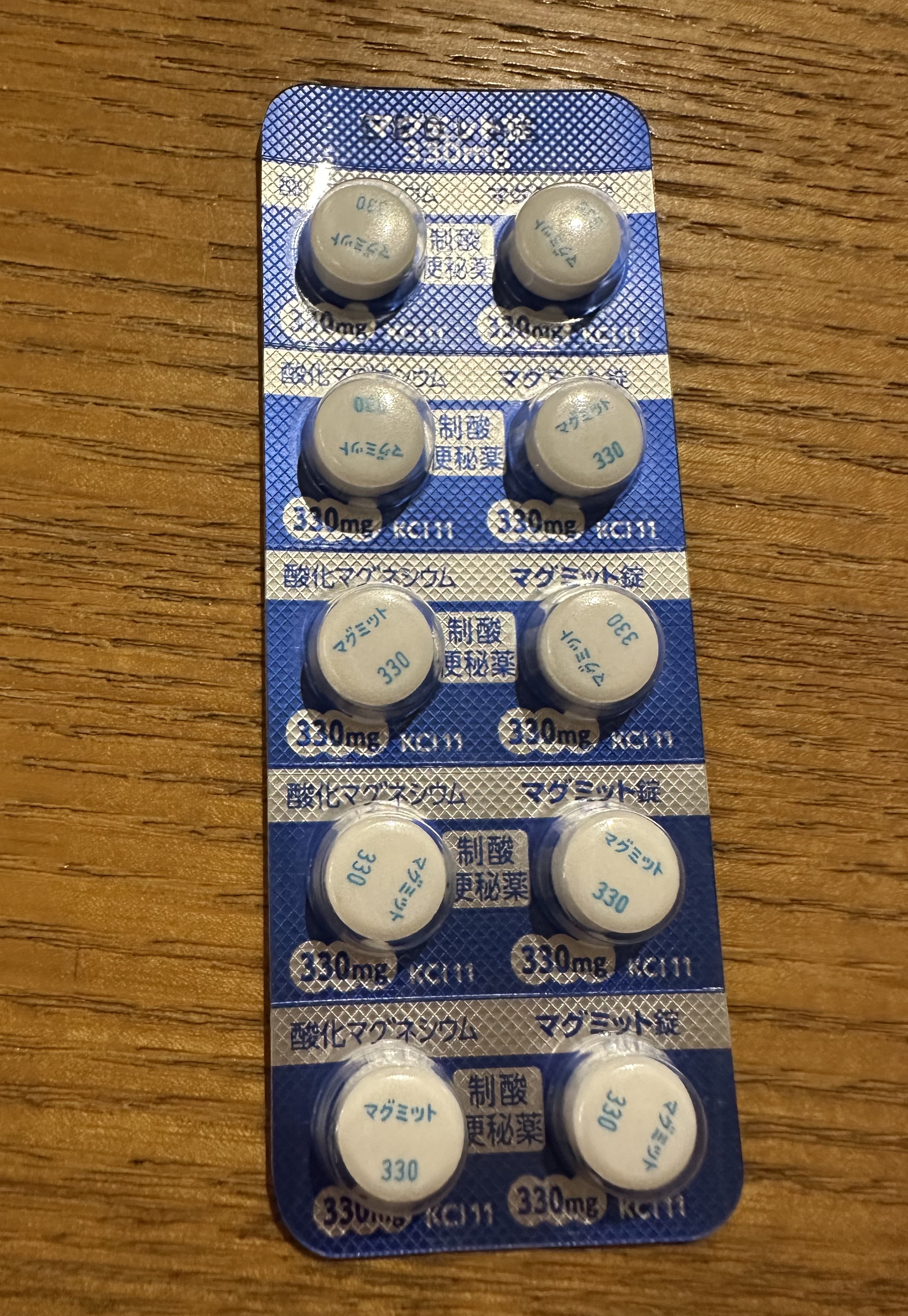 先月大腸検査をして検査結果は、、、問題なし!だったんですが、ピロリ問題が発生して、その結果、ピロリは問題なしだったけど、今度は、癒着問題とまあ、あれは大丈夫だったけどこっちが、、みたいな結局10年以上前の手術の影響が出てきてるって、やっぱり手術は怖い・・・・・・・そんなこんなで処方していただいた酸化マグネシウム酸化マグネシウムとは、、腸内の水分を集めて便を柔らかくしてスムーズな排便を促すもの腸を刺激しないのでお腹が痛くなりにくいってことで便秘の薬はなるべく飲みたくなかったけどこちら飲んでみたらすこぶる調子が良い~ほんとにお腹痛くならない【第3類医薬品】 【メール便 送料無料】マグミット製薬マグミットK 40錠 非刺激性便秘薬 便秘薬 酸化マグネシウム 便秘【楽天ランキング1位】酸化マグネシウム サプリ お腹 すっきり 1000円ぽっきり ビタミン マグネシウム 伝統の技術力×医薬品GMP工場 渡邊薬品 mgo 錠剤 マルチビタミン ミネラル にがり 富山 とやま メール便秘密発送 送料無料 健康食品【第3類医薬品】ミネラート 360錠 酸化マグネシウム 便秘薬 パウチ メール便送料無料/便秘解消 便質改善 下剤 便秘 便秘やく【第3類医薬品】酸化マグネシウム 便秘薬 メタスルー 360錠 非刺激性 お腹が痛くなりにくい 便通改善 制酸剤 制酸薬 市販薬【第3類医薬品】ビオフェルミン酸化マグネシウム便秘薬(360錠*3箱セット)【ビオフェルミン】薬ともうまく付き合っていかないと、、、かな
