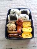 先週の金曜と今日と、相方のお弁当必要デーでした。が・・・私つわりで体調悪し。。。(まあ今日はだいぶんマシなんですけどね)よっぽどコンビニ弁当にでもしてもらおうかと思ったのですけど、「新婚さんはいいよね~」という彼の同僚のコメントが脳裏をかすめ、プライドにかけて作らねば!!(- -;)さすがに朝から揚げ物のニオイは耐えられそうもないので、昨晩実家でいただいた鶏肉のソテーや糸こんやらを温めて詰め込み持たせました。手抜きでごめんちゃいm(_ _)m<メニュー>・鮭おむすびとわかめおむすび・インゲン入り卵焼き・ピリ辛ウインナー(焼いただけ)・鶏肉の照り焼き(ママ作を温めただけ)・糸こんにゃくの明太子和え(ママ作)・インゲンのごま和え・ミニトマト(洗っただけ)こんなとき実家が近いと助かります。1週間のうち2~3回は夕飯をお世話になってます。相方はめちゃくちゃよく食べる人なので4人分でご飯は5合炊いてくれてます(- -;;) オイオイ・・・遠慮しろ!!ありがとう。ママちゃんm(_ _)m