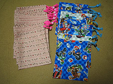 お久しぶりの更新です。新居に引越し、もうすぐ1ヶ月が経とうとしています。介護とまではいかなくても、おじいちゃんのお世話で忙しくしています。毎日2回のトイレ掃除・洗濯・片付けなどなど・・・パソコンすらなかなかONできない状態です・・・でも、頑張ってますよ♪そんな中、お兄ちゃんは卒園・入学、妹は転園と、こちらも手続きでバタバタしていました。桜は満開ではなく、肌寒い入学式でした。妹の入園式はドシャ降りでしたが・・・3日のアレです・・・お兄ちゃんは、入学前から学童に行って、すっかり馴染んでいます。学校でもお友達もたくさんできて、ご近所の同じクラスの男の子と毎日通学しています。おたよりに、もう、参観と家庭訪問のことが書いてありました。学校って何かと忙しいですね。妹ちゃんは、保育園のお友達にお別れの品の巾着をプレゼントしました。コップ袋くらいの大きさです。お返しにアルバムをもらいましたよ。娘のほかに、2人が幼稚園に行くために、保育園をやめたお子さんがいてました。そんなこんなで、毎日忙しいです。ミシンも提出用の雑巾縫っただけ・・・でも、ミシン部屋にミシンとロックが置けるテーブルを買って、並べてあります。レッスンバッグも、裁断したけどアクリルテープがなくて、結局買いました・・・ぼちぼちやっていきたいと思います。