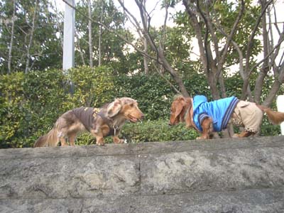 春真っ盛りの東京の気温は24℃程あり、気持ちのイイ日でしたいぬにとっては少し暑いかなエマちゃんとモデナ君の2回目のデートは代々木公園でお花見をしました二人とも暑そうね↑↑モデナ君♂ エマちゃん♀↑↑水仙の前で記念撮影 パシャッ代々木公園の桜は7分咲きランチをしに近くの桜が見えるcafe violette (ヴィオレット)に行ったり今日は桜三昧モー君はズーッとエマちゃんのそばにいたねまだまだラブラブではないけれど、若干二人は親密になったような~楽しそうな二人を見て母達は胸が熱くなりました二人は落穂拾いしているの?拾い食いはダメよ楽しかったね、また来ようね