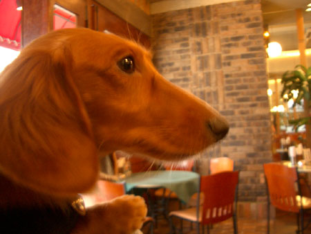 カフェではお嬢様、広場ではスケバンのMダックスのモモちゃんは最近具合が悪くて広場には来ていません。寂しいよ~ (>_