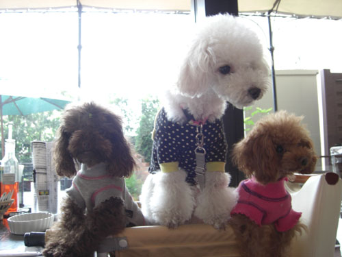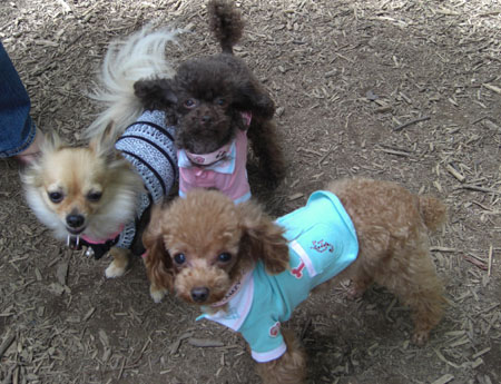4月にオープンした代々木公園ドックランにひろかれさんと行きました。3プードル姫とチワワ姫に囲まれ大興奮のMダックス♂モデナ君初めましてのご挨拶はみんなで「ワンワン」合唱会女の子って可愛い~高級お洋服がとっても似合ってる~今回も手乗りプードルちゃんをしてもらいました。前回のはこちらからまたもや感動~極小ティーカッププードルちゃんだから手乗りが出来るのね~モー君も試してみましたが、無理でした6kg弱なもので・・・風に乗って飛んで行っちゃいそう~どんだけ~ 小さいかはこんだけ~一番活発なトイプードルのホワイト姫↓大型犬と一緒に走っていました。足が速~いモー君よりお姉さんのちわわ姫↓1ヶ月先輩姫はベビーフェイスだから、モー君の方がお兄さんに見えるね気弱なモー君は大型犬が怖いのか、ベンチに座っているモーママの元を離れませんでした(>_