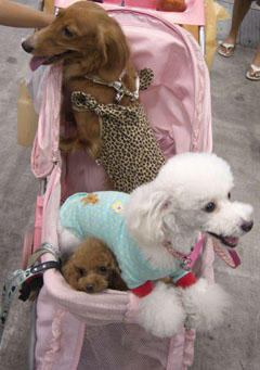 パシフィコ横浜で行なわれているジャパンドッグフェスティバル2007にひろかれさんと行って来きました。今回も会場でのワンコの写真撮影が難しくて↑これしかありませんおとなしくしてくれないので・・・・・イベントはとても楽しかったです。が、1つ気になる事が飼い主に断りも無く勝手に犬の写真を撮る人が多いですね飼い主に許可を得てから写真を撮って欲しいですね。フェスティバルは早々に切上げてベイクォーターに移動してランチを~フレッシュネスドッグカフェでお食事↑チビ姫達とモデナ君はお揃いのお洋服なんだよカフェで写真撮影に励みました食べ物で気を引かせて「はいチーズ」食べ物に忠実なわんこ達今日も楽しかった~ひろかれさん、いつもお世話になってばかりですみません('-'*)アリガト♪またハッスルしに行きましょうね