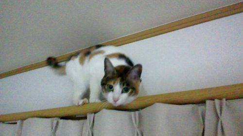 エアコンがクリーニングになると どこからともなくやってくるまりもちゃん スリラーサウンドで「ダメダメダメダメ・・・」っていうと後ずさりして戻っていきます^^ まりもはにゃんこ社会でもちびっこ扱いされて もこちゃんからは女同士の修羅場を教えられ・・・ でもやっとお友達ができました(*^^)v 動画を張り付けられればいいんですけどねぇ~ 我が家へ来たときは500gあまりでしたけど5か月が経ち1.7Kgになりました 細くておっかないんだけど当人は気丈な性分に末っ子の奔放な位置づけでお姉ちゃんの控えめな態度をいいことにぴょんぴょん元気です
