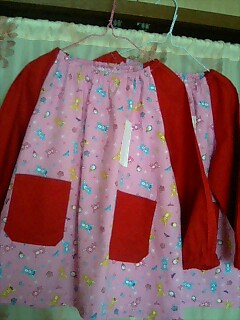 明日からプーさん給食始まりま~すってことはだよ。明日から私、一人でお昼食べるってこと。なんか想像つかないなぁ。今日だって、スーパーで明日からのお昼どうしよっかなぁと悩んじゃってたもん。んで( ゚д゚)ハッ!と気づく。プーがいない真実に。なんか一人ご飯って寂しい今までプーがいたからちゃんと作ってたけど、一人だとなんか作る気しない。でもそれはベビのために良くないから作んなくっちゃねうん、がんばろっと!プーさんも好き嫌いあるから、給食がんばろうね!給食用スモック作りました。やっと(;´Д`)スモックはあると便利なので、また大量生産しま~す。おそろいの布で給食袋も。前に作ったカトラリーケースやコップなども入るので大きめに作ってあります。毎日の持ち物なんで、本人が気に入って持っていってくれたら嬉しいな