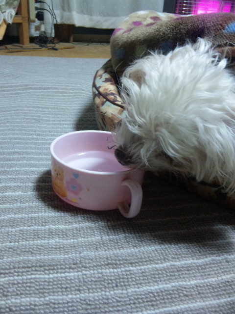 さすがにわんこもお疲れ?水飲みながら力つきました・・・