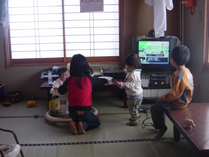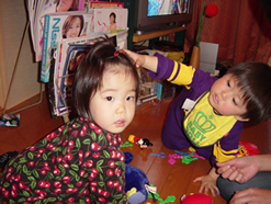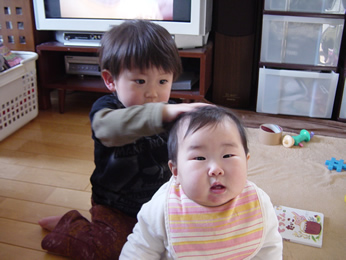 今日はママの友達の奈緒ちゃん・25歳が引っ越すというので最後にランチを奈緒ちゃんちでしました。。メンバーは奈緒ちゃんの子2人(上のおね~ちゃん今年7才・下の子今年5歳)とあきちゃん・あさひちゃんとりーたん&ママ。。。人数的にはそんなに多くは無いけどこれがまたひっちゃかめっちゃか。。。も~文章になりません。。。おね~ちゃんのレイナちゃんは家族ゴッコがやりたいといって張り切ってママ役に徹し、りーたんはあかちゃん役でかなりお世話してもらってました。。でも本当にママより優しく我が子のようにお世話するレイナちゃんを見て『やっぱり兄弟って必要~~』っとしみじみ。。。あさひちゃんはまだお座りも出来ないので家族ゴッコにはあまり出演しませんでした~~~。がむりやりレイナちゃんの餌食にさせられそうに・・んでもってレイナちゃんはおませさん。。だってママにレイナちゃん・・『レイナのズボンシマロンだよ~~~』ママ『へ~そうなんだ~~ ん???シマロン???え??シマロンってあのシマロン???』ひょえ~~~おいおいおめ~さん6歳でしょ???シマロンって・・・・心のコメント⇒ママ4年前に6本買ったやつだろ??? っと心のおたけび~~~ついでに・・・・ママ・・・『ね~レイナちゃん彼氏とか好きな子とか居るの??』とか質問攻め。。レイナちゃんはチョコ買って渡そうとしたけど女の子にあげっちゃったんだって。。。う~~んママの6歳って何してたかな~~バービー人形でひたすら遊んでたぞ~~。そしてシマロンなんて履いてないし・・・そしてりーたんはバブちゃんに・・・いや~今日はホント疲れた~~~。でも奈緒ちゃんは25歳で2児のママだけどしっかりしてて頼もしい。。そして何より女を捨ててない所が、す・凄い。。。