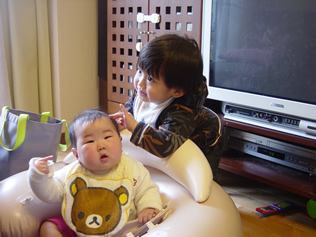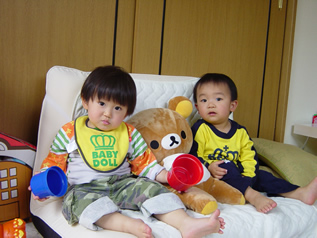 今日はマブダチの創くんと遊びました。。二人に挟まれているリラックマの取り合いになり。。。りーたんは案の定ママに似て定欲しがりータで創くんのリラックマをよこせ~と奪ってしまいいつも温厚な創くんもこればかりは譲れ無いらしく、反撃に出たりしてママはタジタジでした。。いつもいつもゴメンね創マン~~これに懲りずりーたんとまた遊んでや~~↓↓珍しく二人そろっておとなしいのでつこりんママとシャッターチャンスをバシバシ ランチタイムは。。。。まいどまいどあつかましくご馳走になってるありーたん親子。。今日はお好み焼きでした~~~~しかもりーたんは気持ち良いくらい食べる食べる。。。よっぽど美味しかったんだでしょママもりーたんに取られたくないな~な~んて思いながら母親のクセに意地汚い心満点(笑)。。そして二人仲良くあそんでました。。外にも探検しに行ったり~~~↓↓創くんは業師やばいポーズでママを圧巻。。 今日はラッキーな事に二人同時のおネンネタ~イム寝顔はエンジェルBOYS達。。癒されますな~ そんなこんなで今日もお邪魔しました~~~