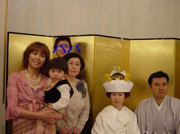 この日りーたんはママのいとこの和子ね~ちゃんの結婚式に行きました。。和子ね~ちゃんは前に一度だけブログで紹介した事がありますが、このね~ちゃんはBOOのHPを制作したりとパソコン関係??の仕事をバリバリやってたのでした。。今日は家族みんなで呼ばれたので全員で参加りーたんはフォーマルを持ってなかったのでネットオークションで購入。。ブリティッシュチャイルドと言った感じでなかなか良いフォーマルが買えましたりーたんは結婚式に参加するのが初めてでママも色々大変でした。式の時にはやはり飽きたらしくギャ~ギャ~騒ぎだしてきたので必殺お菓子攻撃で何とかごまかしその後の披露宴も動き回って大変でしたでもやっぱり結婚式はいつ出ても良いな~~って感じ。ママももう一回やりたいよ~~って相手はもちパパなんだけど。。ま~長丁場で式&披露宴合わせて4時間半位。。帰ってきた頃にはみんなクタクタだったけど、元気なのはりーたんだけ。。でも凄い楽しかったね~~お幸せに~~っと感極まった結婚式でした。。