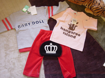 今日はベビドのSALE初日。。我が家よりいち早くつこりんママから『ベビドへ行くよ~』が来たのでママはお目当ての星型モンパンがあるかどうかチェックを入れてもらう事に・・・しばらくしてつこりんママから『90サイズ品切れで無いよ~~~』っとその時ママは家具を選びに行っていたので帰ってネットをチェック在庫があったのでつこりんママにTELし共同購入。。無事ゲッチュ~しました。。それから夕方近くにベビドへ。。。夕方というのに超混み混み。。でも前から入荷待ちの黒いパンツが来ていたので地味に集めたスタンプカードの商品券で交換でもつこりんママとの連係プレーはなんか笑ってしまいました。。ちなみにうちのパパはママにあきれてそうな感じ。。。。