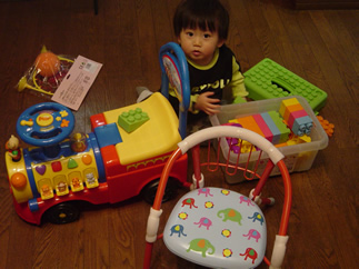 今日ママはシーズン最後という事でボードに行ってきました~~。。もちろんりーたんも・・・・っと言いたいとこですが最近車に長時間乗ってられないから急遽キャンセルで都内にあるママの実家マモンのおうちへ。。。。ウエアーとか色々揃えたのに。。。ショック・・・・マモンちに行きおもちゃお買いにトイザらスへ車とバスケットゴールセットとブロックとパイプチェアーを買ってもらったよ。。なんかりーたんは超おりこうさんだったみたいで。。。よく昼寝もしてモリモリご飯も食べて~~~なんなんだ??一体??ママの時とかなり大違い結構ショック大ママは土曜から水曜日まで実家とこっちをなんだかんだいって3往復。。超きつかった~~~。火曜日は恵比寿に行ったり。。でりーたんもお疲れモード。。そうしてりーたんとママは懲りずにまたベビドにも進出。。ハイハイお買い上げ~新作のベスト&ロンT&パンツ。。結構お金使ってしまった~~~ま~しょうがないっか。。来年こそりーたんをゲレンデデビューさせるぞ~。しかしここ最近忙しかった~~~意味は違うけど売れない芸能人よりハードなありーたんなのでした。
